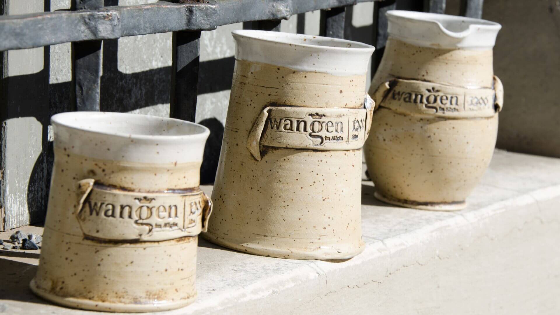Becher, Schüsseln, Tassen, Teller - auf der Töpferscheibe frei gedreht und zweifach bei bis zu 1.230°C gebrannt.